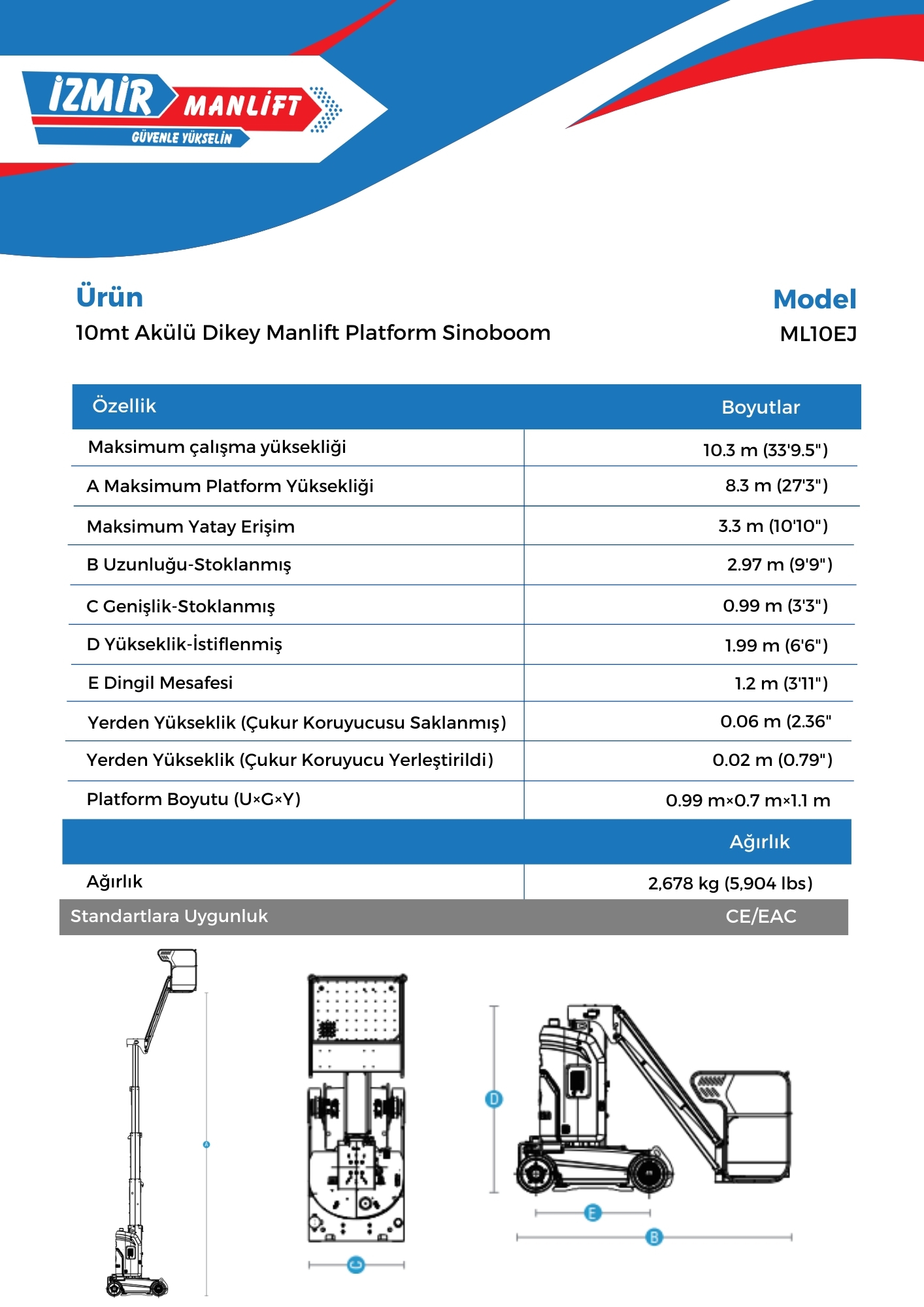 10mt Akülü Dikey Manlift Platform Sinoboom ML10EJ