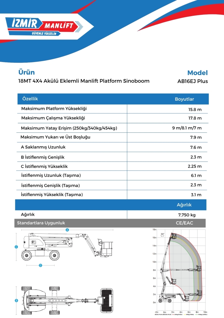 18MT 4X4 Akülü Eklemli Manlift Platform Sinoboom AB16EJ Plus