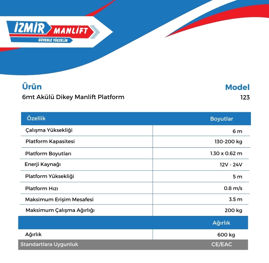 6mt Akülü Dikey Platform