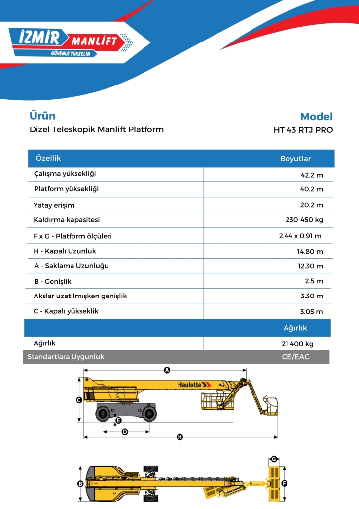 HT 43 RTJ PRO – Dizel Teleskopik Manlift Platform